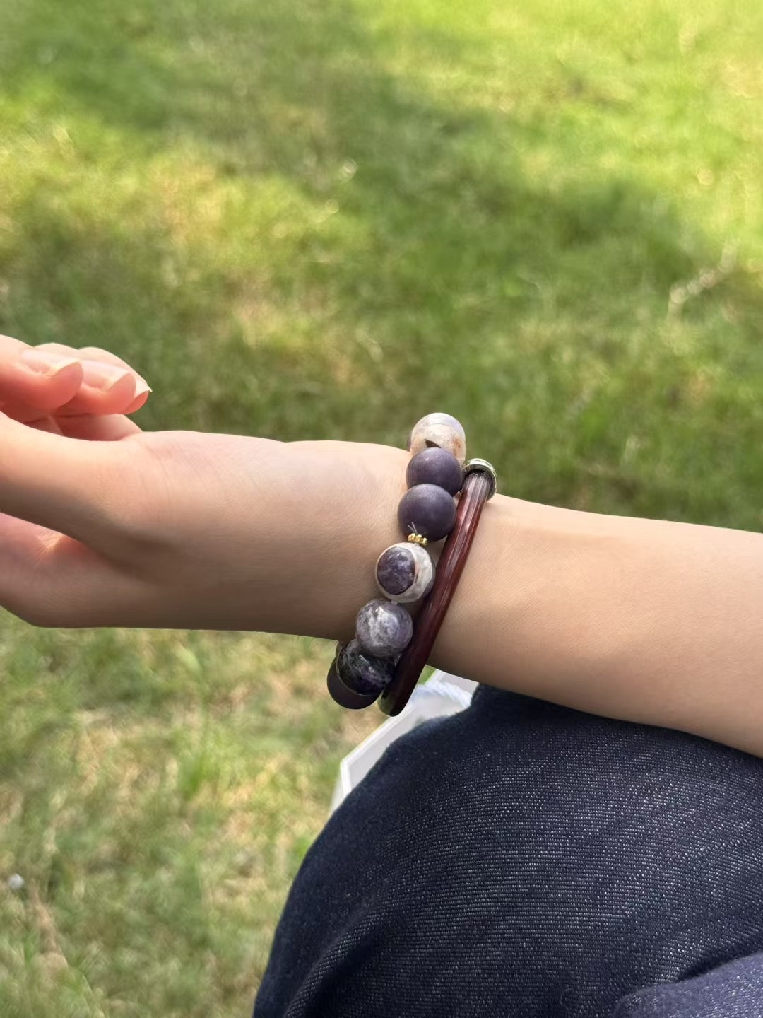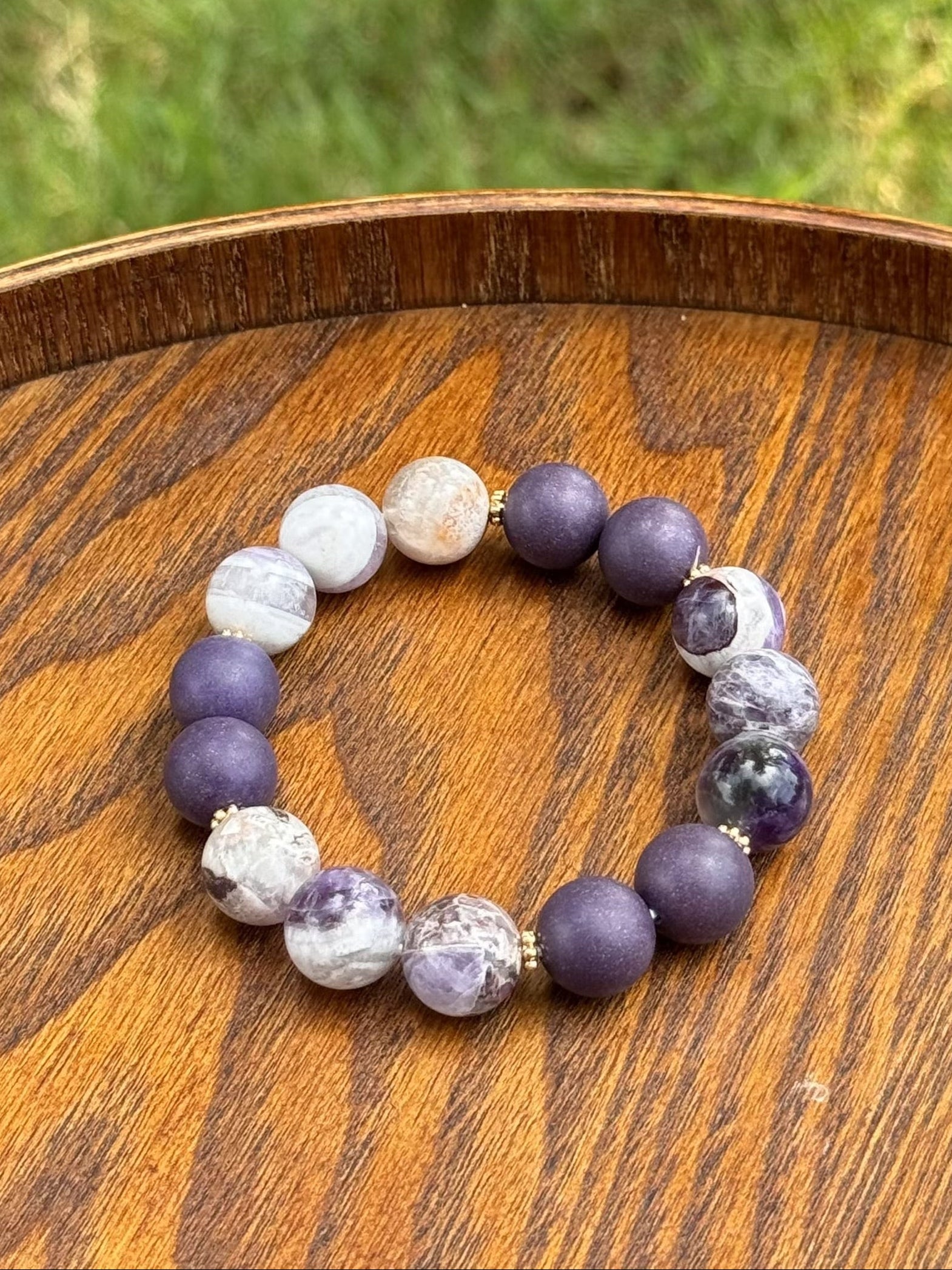 Violet Dawn's Ethereal Dream beaded bracelet has a calming woody scent that helps purify your thoughts and melt stress away—it's like a gentle hug for your soul!